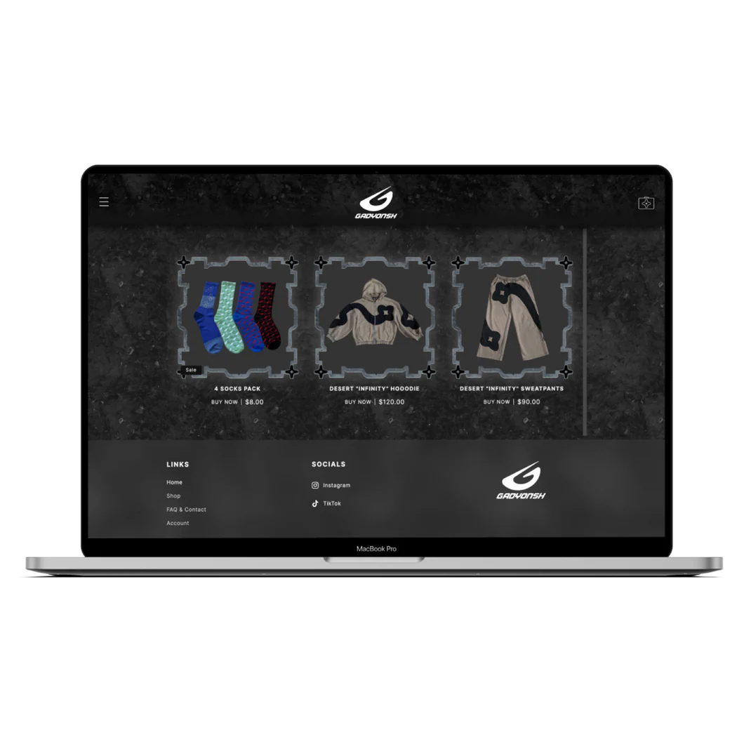 Gadyonsh, USA-based clothing brand, partnered with us to bring their visionary project to life. Collaborating closely, we meticulously crafted the design concept, ensuring it aligned perfectly with their brand ethos. Our team then skillfully developed this concept into a website on Shopify, built from the ground up